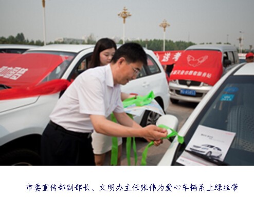 6月5日上午,以“做文明人,為莘莘學(xué)子播撒愛心;辦文明事,讓鶴城大地綻放異彩”為主題的鶴壁市2014“愛心送考”志愿服務(wù)行動啟動儀式在市文化藝術(shù)中心廣場舉行。這是該市連續(xù)第8年組織“愛心送考”活動,愛心駕駛員志愿者將在6月7日、8日為持有準考證的高考學(xué)生無償提供送考服務(wù)。啟動儀式上,由出租車、公交車和私家車等組成的六百多輛愛心車張貼上了愛心送考標識,系上了象征對學(xué)子美好祝愿的綠絲帶。愛心車駕駛員代表宣讀倡議書:“用力所能及的關(guān)心和幫助溫暖考生心靈,傳遞愛的火種,做‘愛心送考’使者,構(gòu)建和諧鶴壁”。最后,市委宣傳部副部長、文明辦主任李懷新宣布“愛心送考”活動正式啟動。愛心車輛徐徐從活動現(xiàn)場開出。