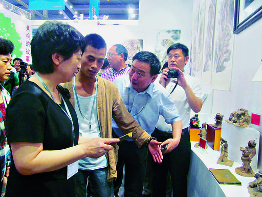 趙素萍對我市展出的泥塑、泥咕咕、裸眼3D產(chǎn)品、動漫短片等表現(xiàn)出濃厚的興趣,希望參展企業(yè)在宣傳推介文化產(chǎn)品的同時,積極學(xué)習(xí)外地在文化產(chǎn)業(yè)發(fā)展方面的經(jīng)驗和做法,不斷完善提升,為我市乃至全省文化產(chǎn)業(yè)的大發(fā)展大繁榮提供強有力的支持。在河南三陽光電有限公司展臺處,趙素萍觀看了裸眼3D產(chǎn)品展示,認(rèn)為該項目科技含量高、市場潛力大,鼓勵企業(yè)加快開發(fā)更舒適、更逼真的產(chǎn)品,早日實現(xiàn)產(chǎn)品進入家庭的目標(biāo)。在魂子泥塑藝術(shù)有限公司展臺處,趙素萍認(rèn)真察看該公司的展品,并與公司負(fù)責(zé)人、河南民間工藝美術(shù)大師宋慶春親切交談,鼓勵他進一步將傳統(tǒng)文化與現(xiàn)代創(chuàng)意相融合,做出更多更好的工藝品。趙素萍還觀看了市華寶動漫有限公司出品的動漫短片《小鶴仙與大水怪》,對該公司的創(chuàng)意及制作水平給予充分肯定。