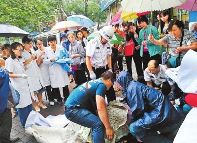 “快!找個衣服給孩子蓋住。”不知誰喊了一聲。由于下雨天冷,光溜溜的小家伙凍得渾身發(fā)紫。話音剛落,沿街門店的商戶楊女士健步如飛,回到店里把自家孩子的毛毯拿過來,熱心市民有的還把衣服脫掉……毛巾、毛毯、衣服從人縫里送進來,一層又一層地裹住嬰兒。當120急救車趕到現場,眾人把產婦抬上了救護車,所有人長長地出了口氣。