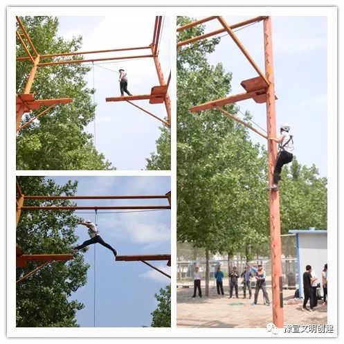 從一開始的團(tuán)隊破冰,到考驗智慧和勇氣的互動游戲,大家相互配合、彼此信任,英姿颯爽、奮力拼搏。在“高空斷橋”項目中,隊員們爬上8米高空,躍過斷橋后折回,再從空中降落。當(dāng)有隊員面對高空遲疑害怕時,其他隊員都紛紛加油鼓勁,耐心等待,傳遞著集體溫暖的力量,最終所有隊員都順利完成了挑戰(zhàn)。